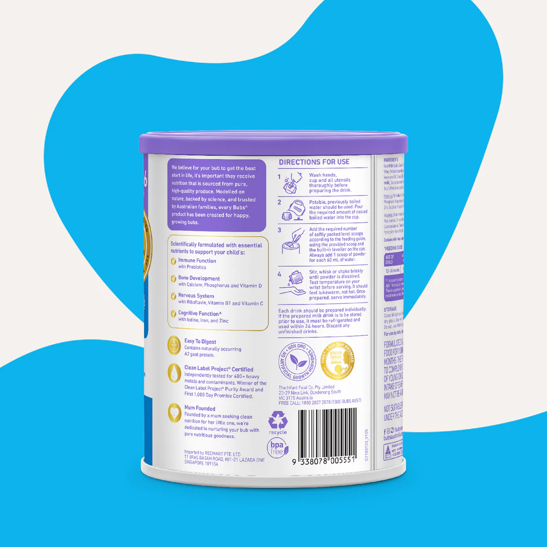 Bubs Easy Digest Goat Milk Powder (12–36 months) 800g – Authentic & Imported from Australia