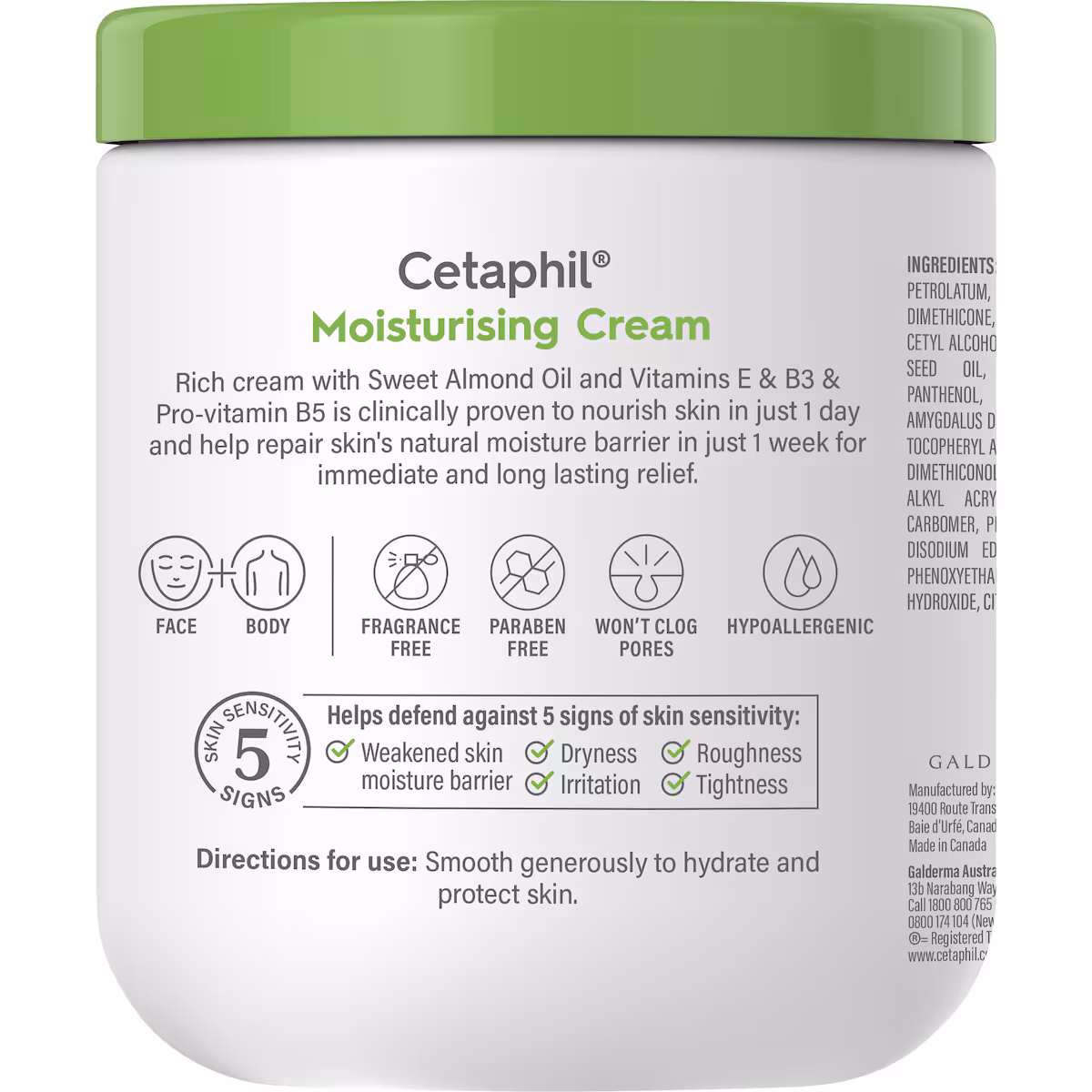 Cetaphil Moisturising Cream For Dry to Very Dry, Sensitive Skin 550g – Authentic & Imported from Australia